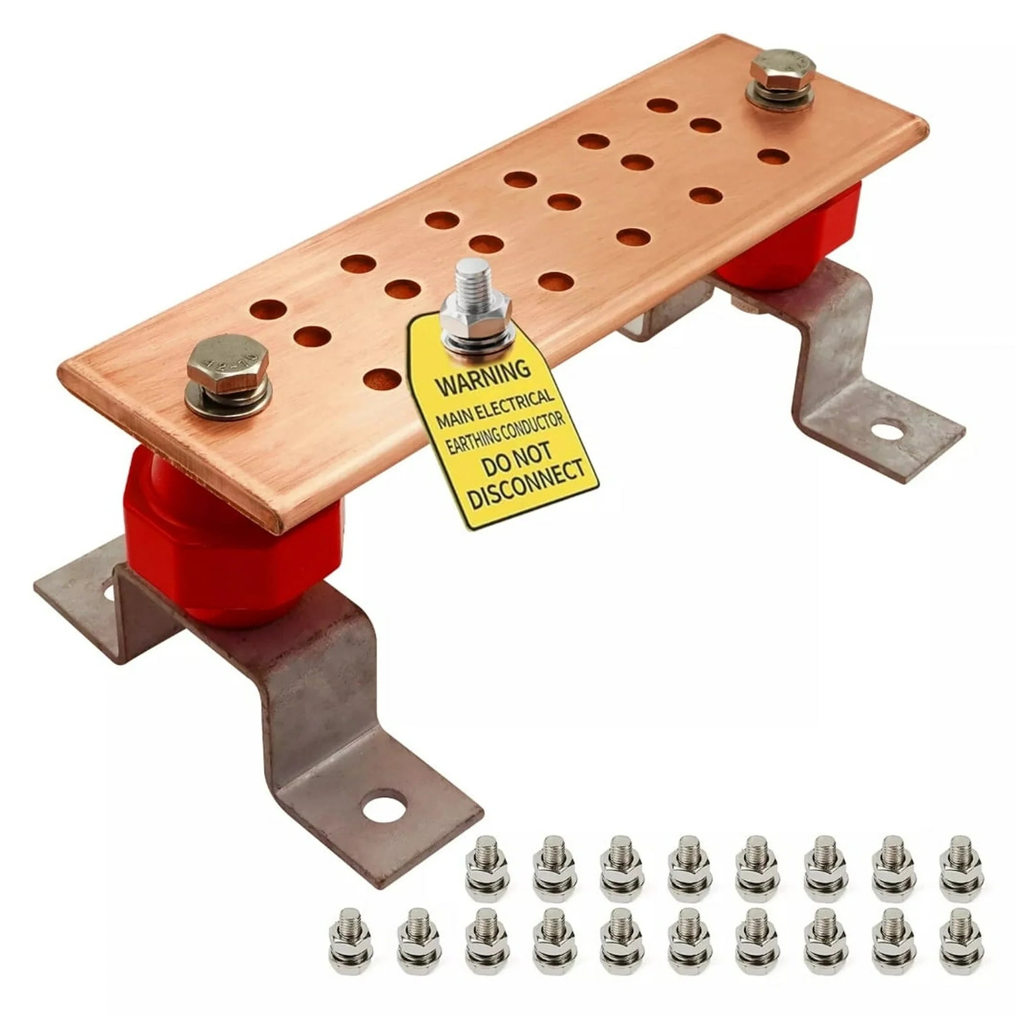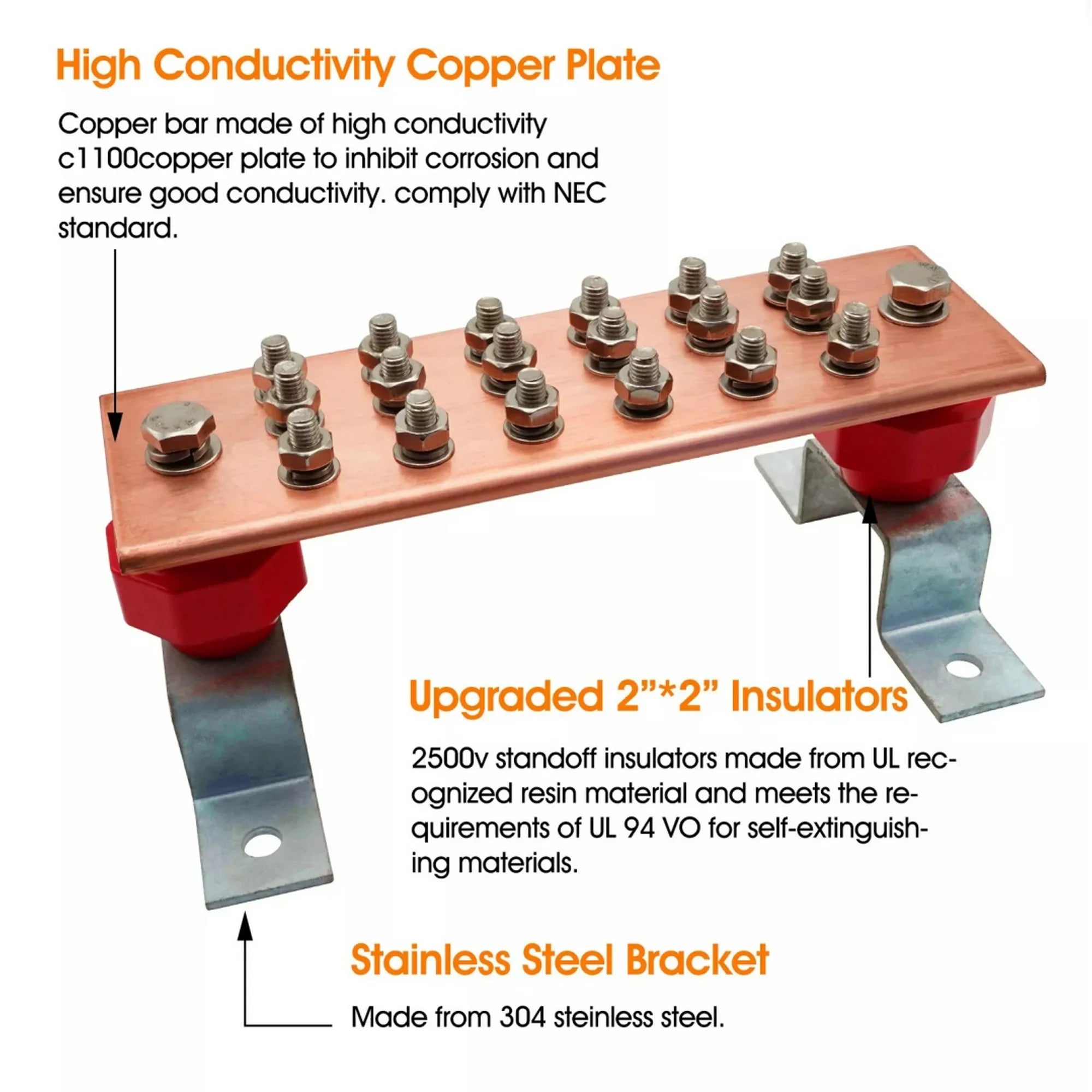 One Set Included: High conductivity copper plate*1, SM40 polyester standoff insulators*2, Stainless steel brackets*2, 18 sets stainless steel washer&bolts.